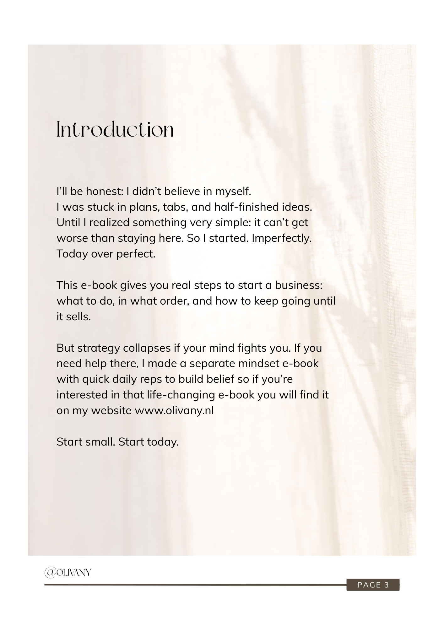 Dit e-book is jouw start. Het is de makkelijkste manier om te beginnen aan je eigen business. Weet je nog niet precies wat je wil met je business? Geen probleem! In dit e-book geef ik je business ideeën die je zo kan overnemen. Wees er snel bij, alleen bij bestellingen die vóór 23:59 geplaatst worden ontvang je gratis onze planner erbij!